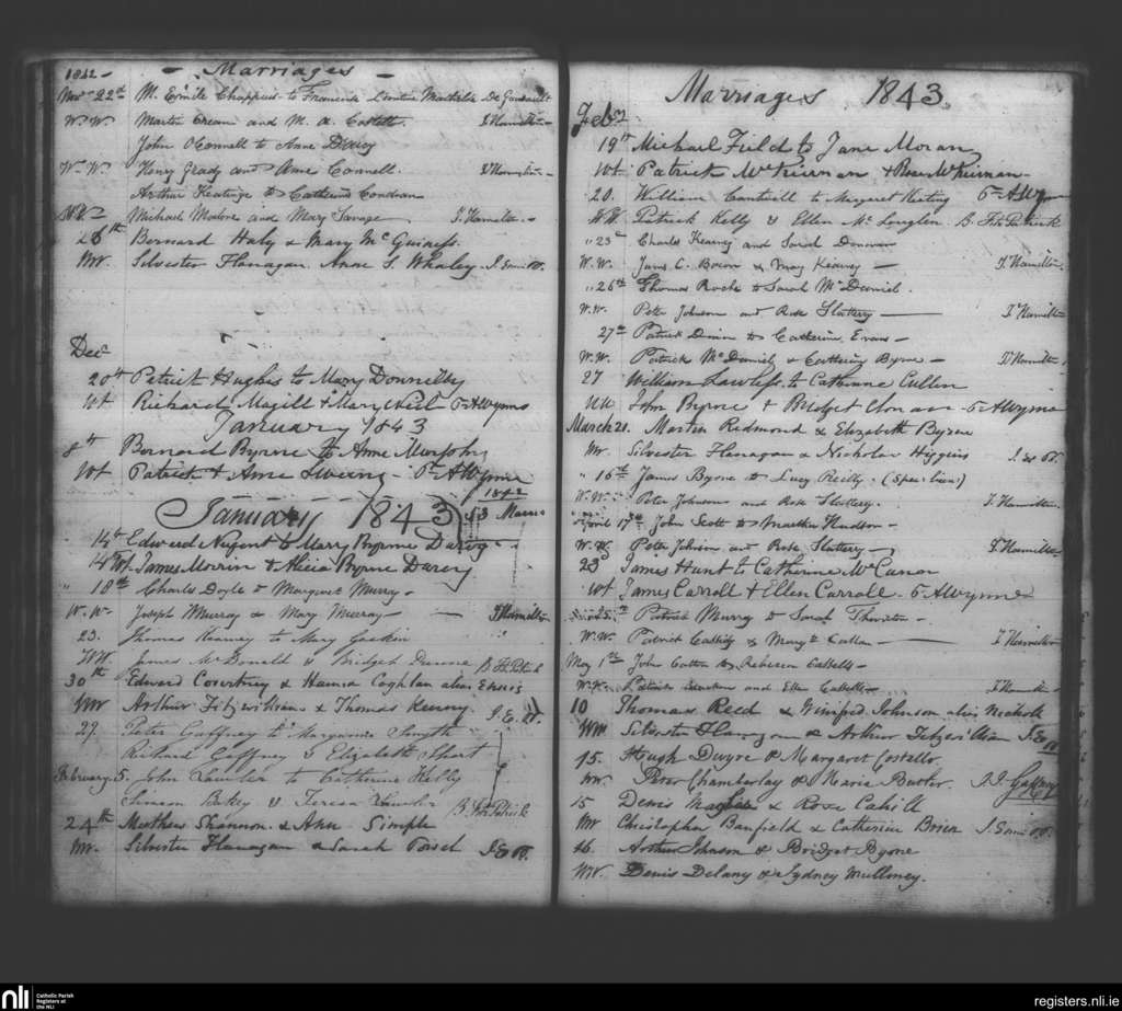 Booterstown; County of Dublin; Archdiocese of Dublin. Marriages, Nov. 1842 to May 1843