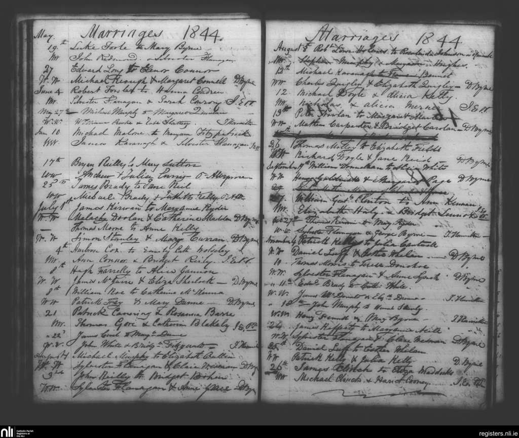 Booterstown; County of Dublin; Archdiocese of Dublin. Marriages, May 1844 to Nov. 1844