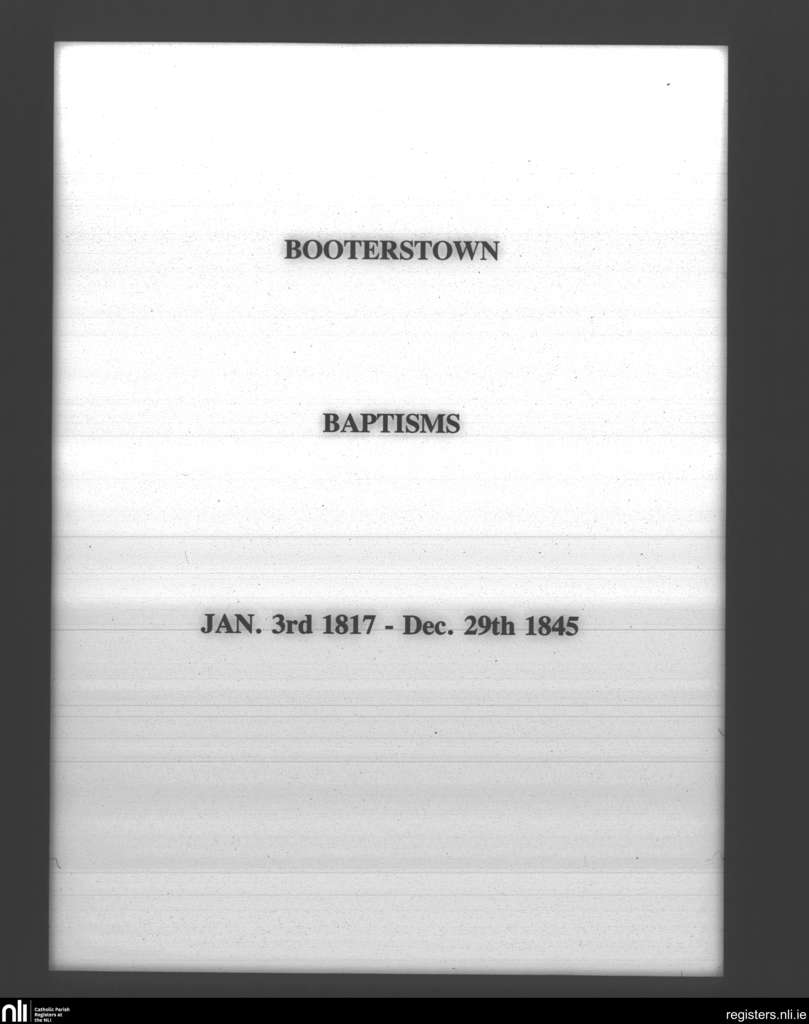 Booterstown; County of Dublin; Archdiocese of Dublin. Baptisms