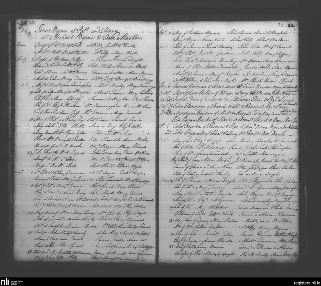 Booterstown; County of Dublin; Archdiocese of Dublin. Baptisms, June 1820 to Dec. 1820