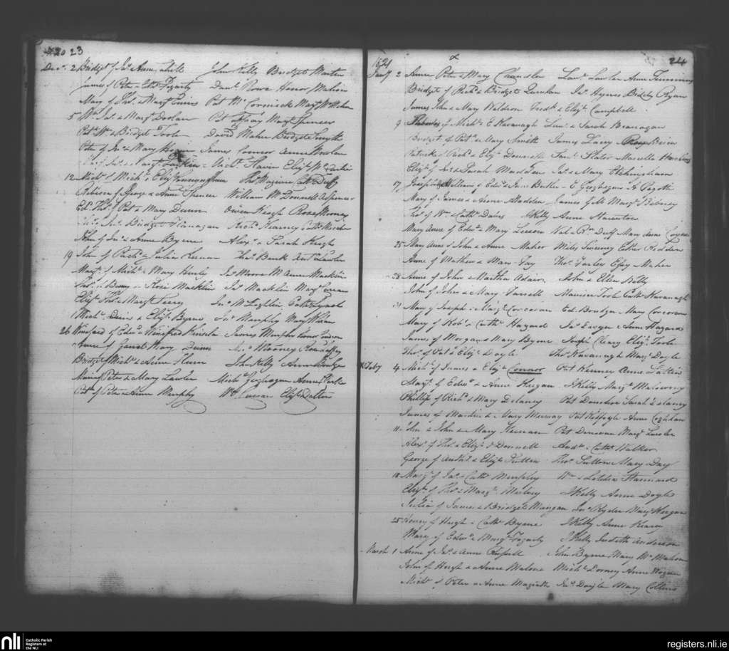 Booterstown; County of Dublin; Archdiocese of Dublin. Baptisms, Dec. 1820 to Mar. 1821