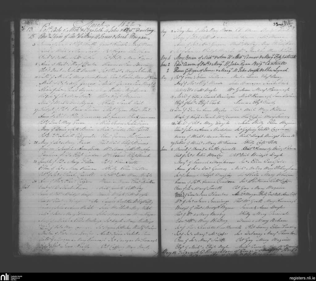 Booterstown; County of Dublin; Archdiocese of Dublin. Baptisms, Mar. 1822 to June 1822
