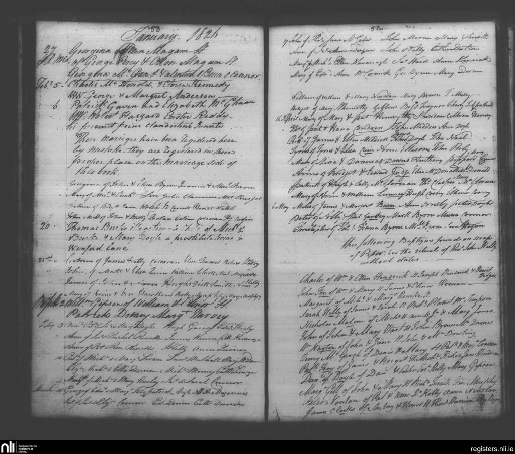 Booterstown; County of Dublin; Archdiocese of Dublin. Baptisms, Jan. 1826 to May 1826