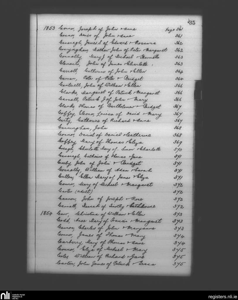 Booterstown; County of Dublin; Archdiocese of Dublin. Baptisms