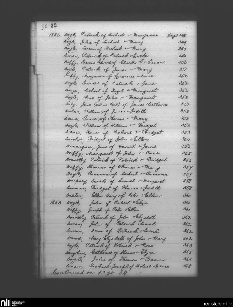 Booterstown; County of Dublin; Archdiocese of Dublin. Baptisms
