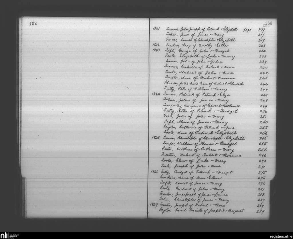 Booterstown; County of Dublin; Archdiocese of Dublin. Baptisms