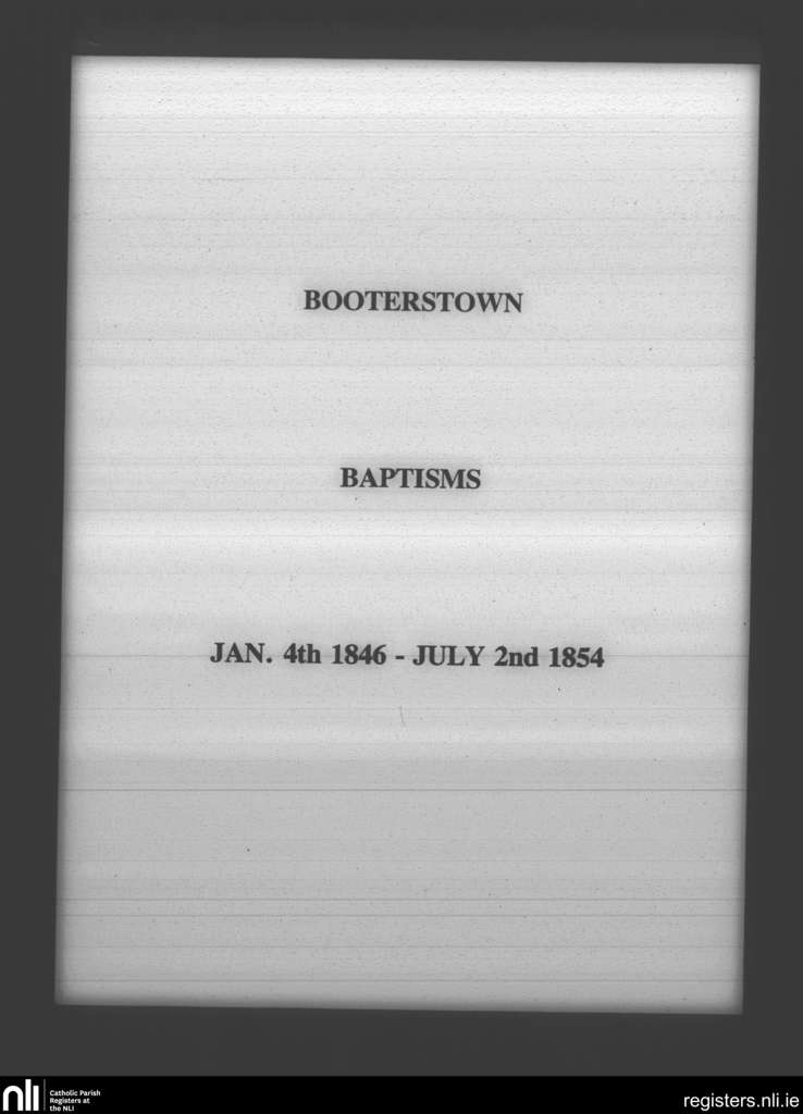 Booterstown; County of Dublin; Archdiocese of Dublin. Baptisms