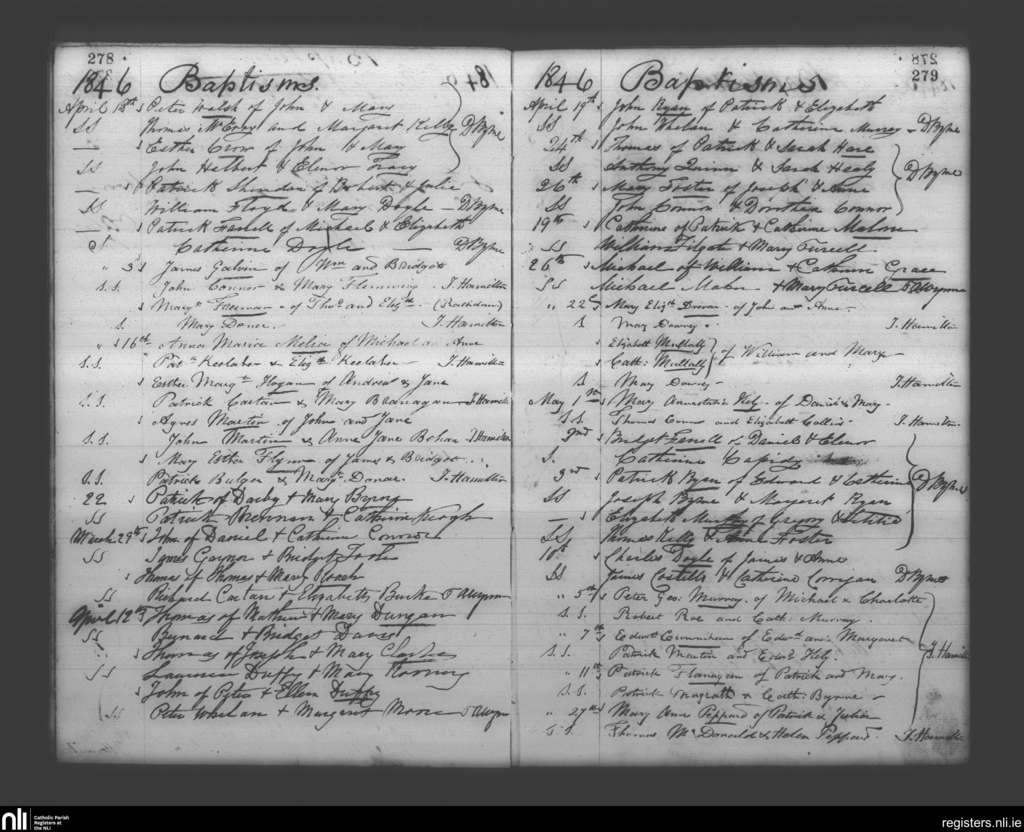 Booterstown; County of Dublin; Archdiocese of Dublin. Baptisms, Mar. 1846 to May 1846