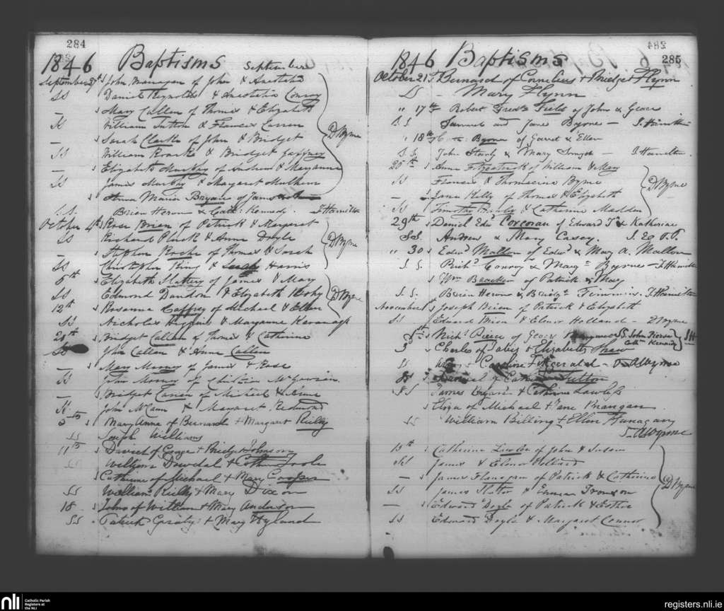 Booterstown; County of Dublin; Archdiocese of Dublin. Baptisms, Sep. 1846 to Nov. 1846