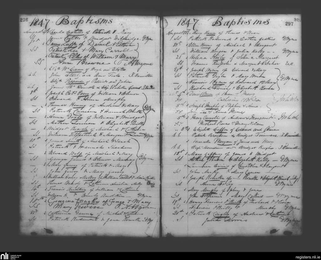 Booterstown; County of Dublin; Archdiocese of Dublin. Baptisms, Aug. 1847 to Sep. 1847