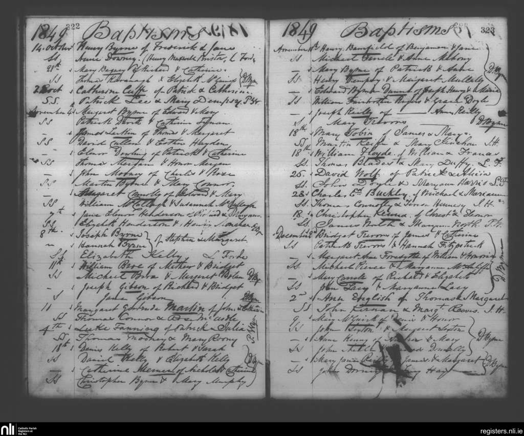 Booterstown; County of Dublin; Archdiocese of Dublin. Baptisms, Oct. 1849 to Dec. 1849