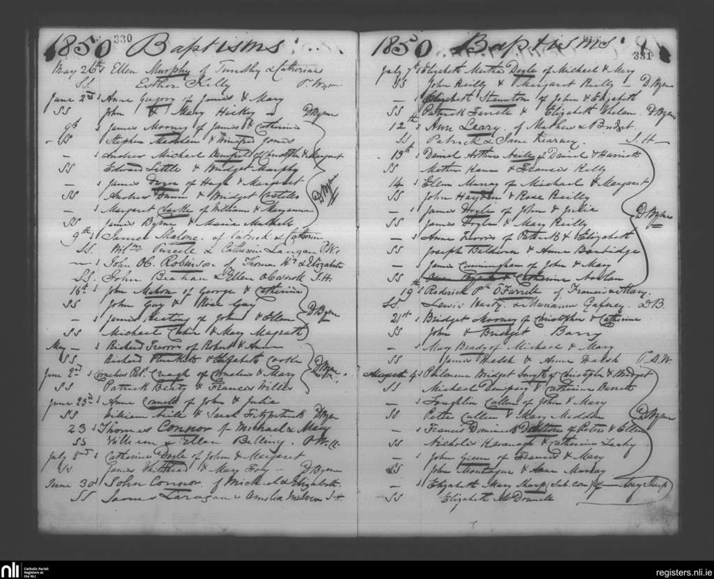 Booterstown; County of Dublin; Archdiocese of Dublin. Baptisms, May 1850 to Aug. 1850