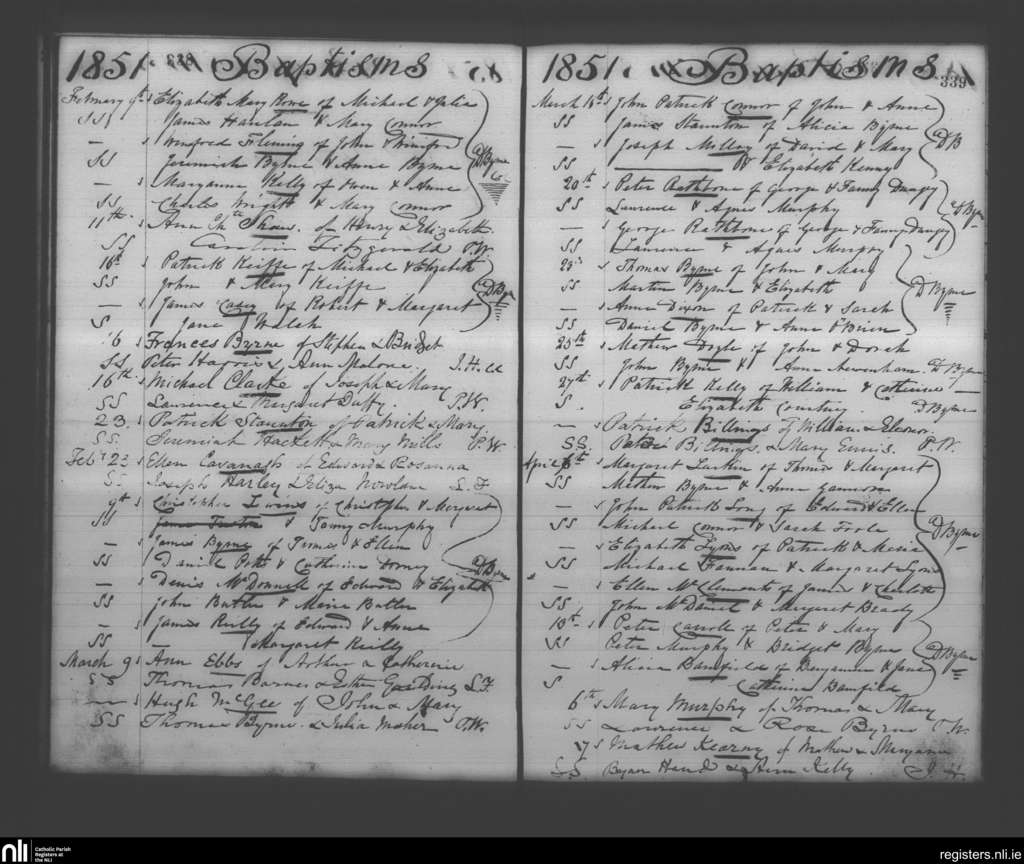 Booterstown; County of Dublin; Archdiocese of Dublin. Baptisms, Feb. 1851 to Apr. 1851