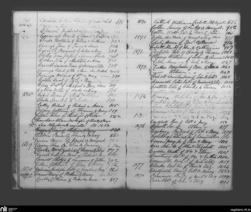 Booterstown; County of Dublin; Archdiocese of Dublin. Baptisms