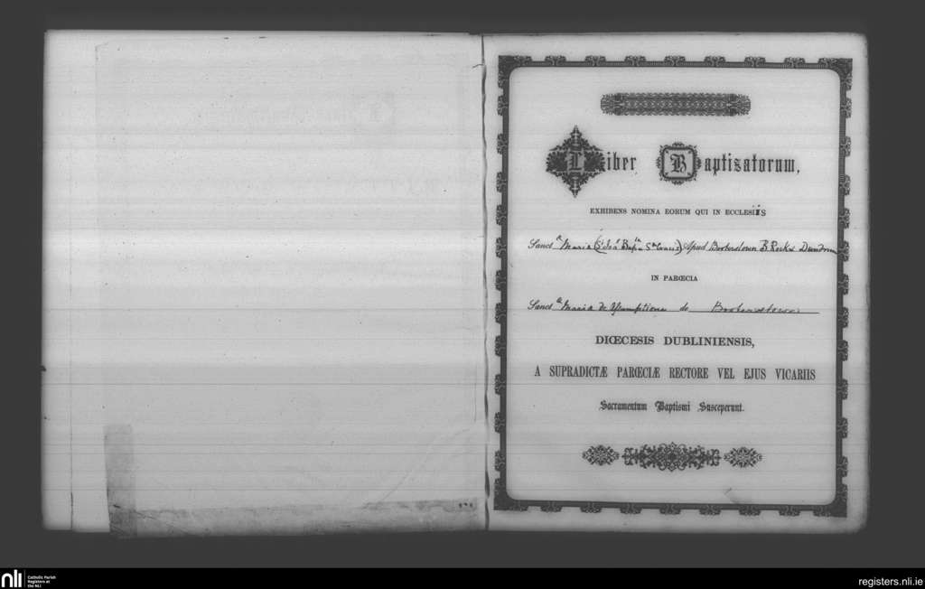 Booterstown; County of Dublin; Archdiocese of Dublin. Baptisms