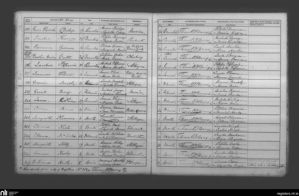 Booterstown; County of Dublin; Archdiocese of Dublin. Baptisms, Dec. 1860 to Apr. 1861