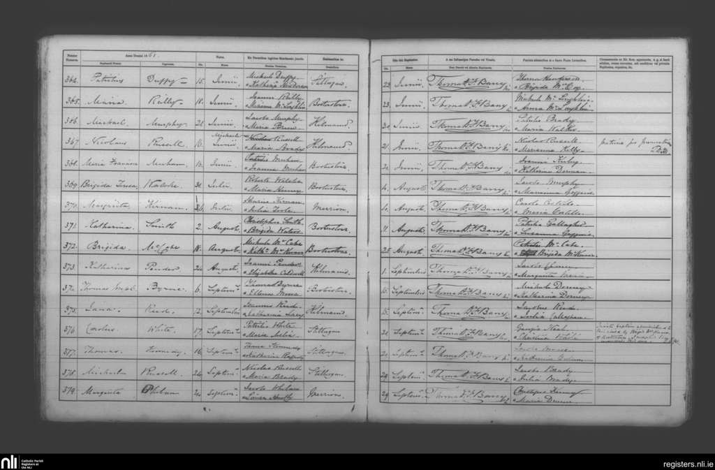 Booterstown; County of Dublin; Archdiocese of Dublin. Baptisms, June 1861 to Sep. 1861