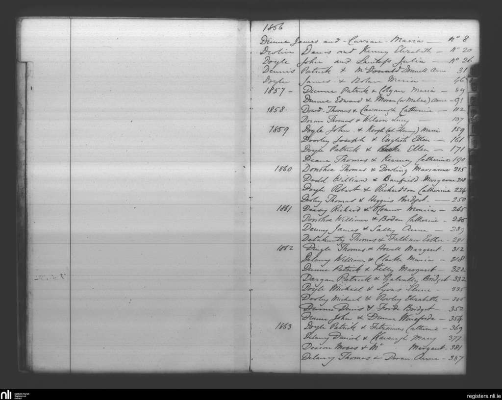 Booterstown; County of Dublin; Archdiocese of Dublin. Marriages