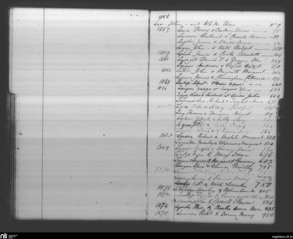 Booterstown; County of Dublin; Archdiocese of Dublin. Marriages