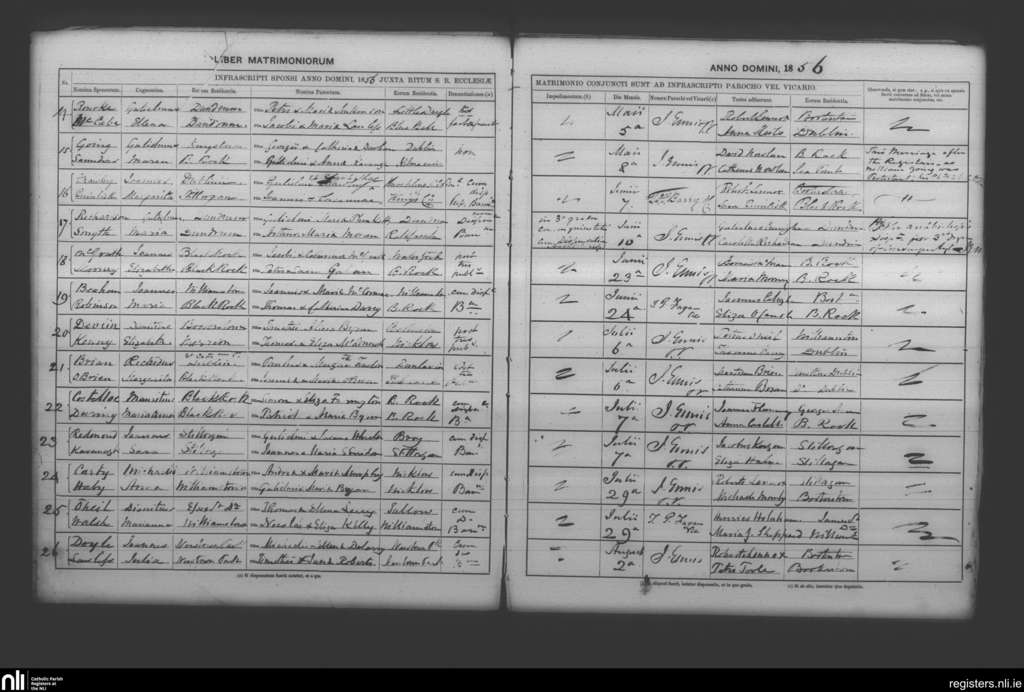 Booterstown; County of Dublin; Archdiocese of Dublin. Marriages, May 1856 to Aug. 1856