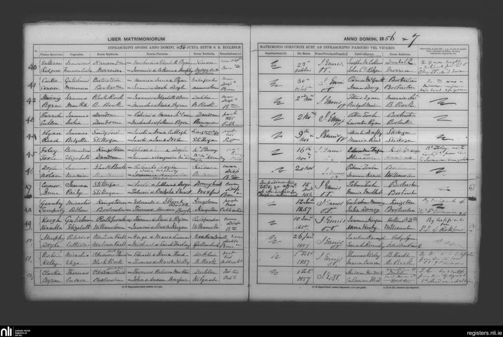 Booterstown; County of Dublin; Archdiocese of Dublin. Marriages, Oct. 1856 to Feb. 1857