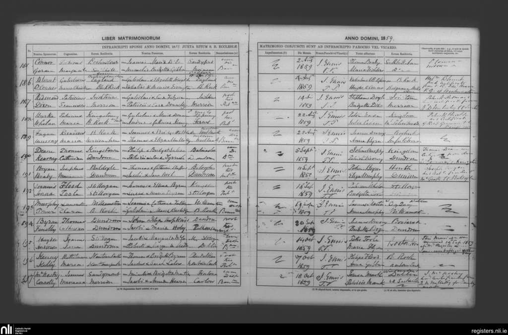 Booterstown; County of Dublin; Archdiocese of Dublin. Marriages, Aug. 1859 to Oct. 1859