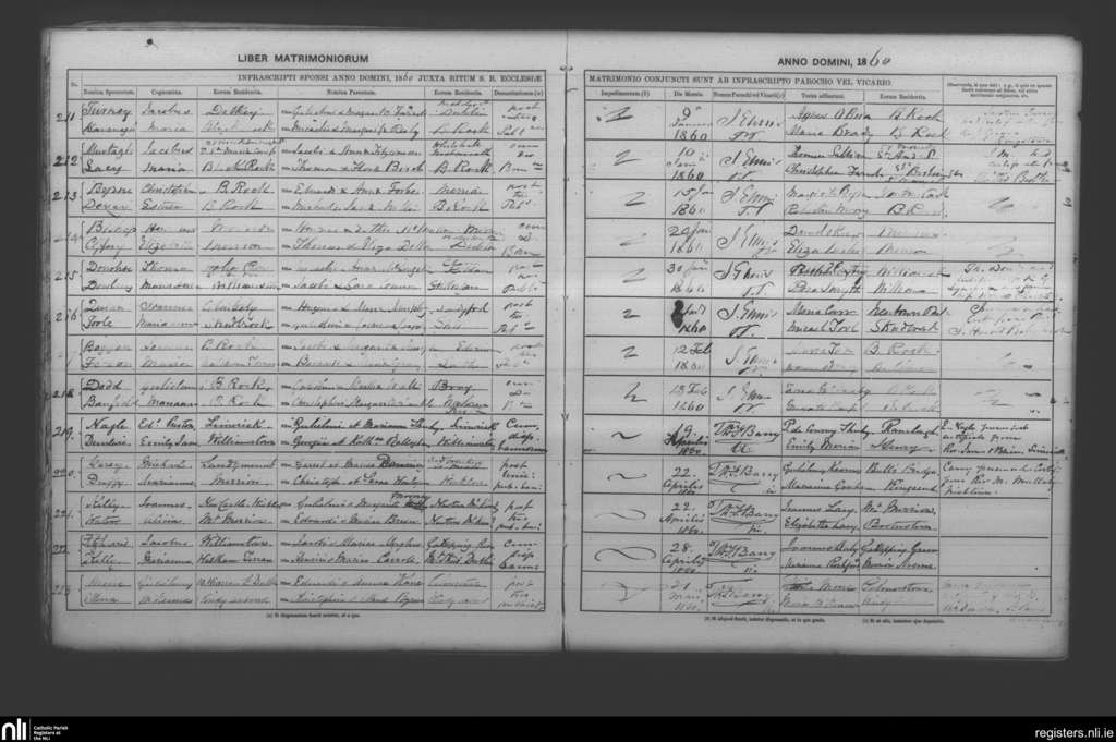 Booterstown; County of Dublin; Archdiocese of Dublin. Marriages, Jan. 1860 to May 1860