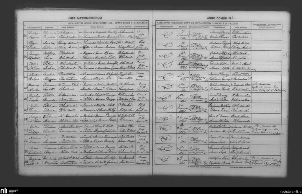 Booterstown; County of Dublin; Archdiocese of Dublin. Marriages, Sep. 1860 to Feb. 1861