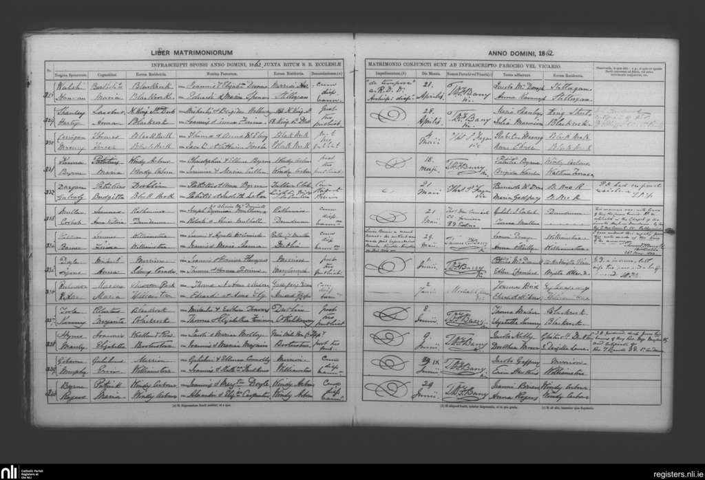 Booterstown; County of Dublin; Archdiocese of Dublin. Marriages, Apr. 1862 to June 1862