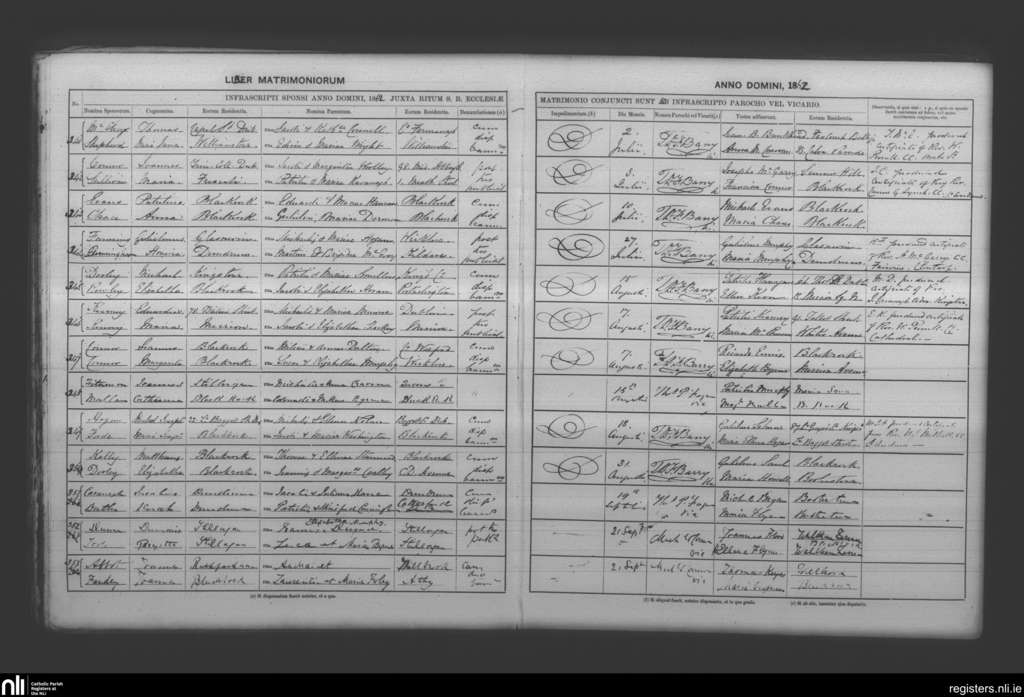 Booterstown; County of Dublin; Archdiocese of Dublin. Marriages, July 1862 to Sep. 1862