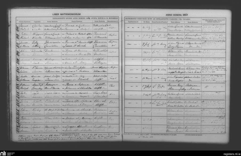 Booterstown; County of Dublin; Archdiocese of Dublin. Marriages, July 1863 to Sep. 1863