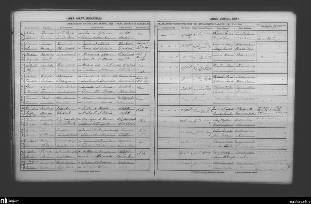 Booterstown; County of Dublin; Archdiocese of Dublin. Marriages, Oct. 1863 to Dec. 1863