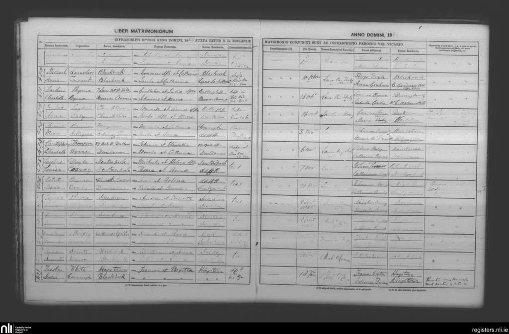 Booterstown; County of Dublin; Archdiocese of Dublin. Marriages, Oct. 1864 to Jan. 1865