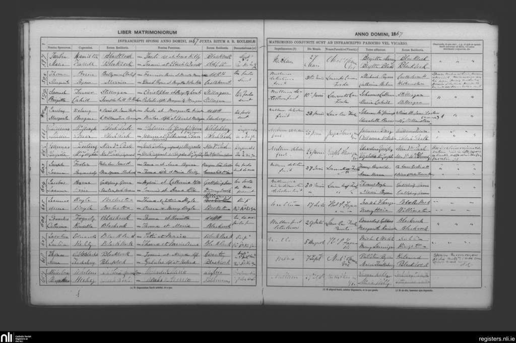 Booterstown; County of Dublin; Archdiocese of Dublin. Marriages, May 1867 to Sep. 1867