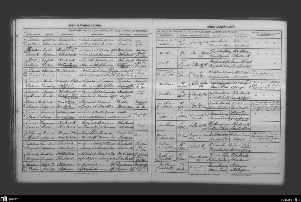 Booterstown; County of Dublin; Archdiocese of Dublin. Marriages, July 1868 to Oct. 1868
