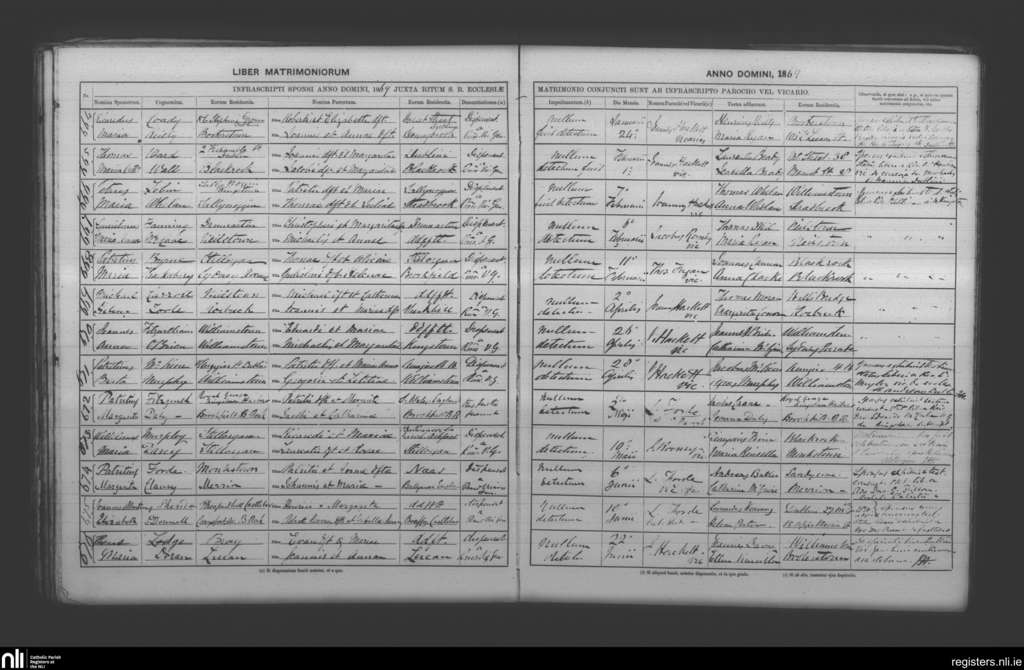 Booterstown; County of Dublin; Archdiocese of Dublin. Marriages, Jan. 1869 to June 1869