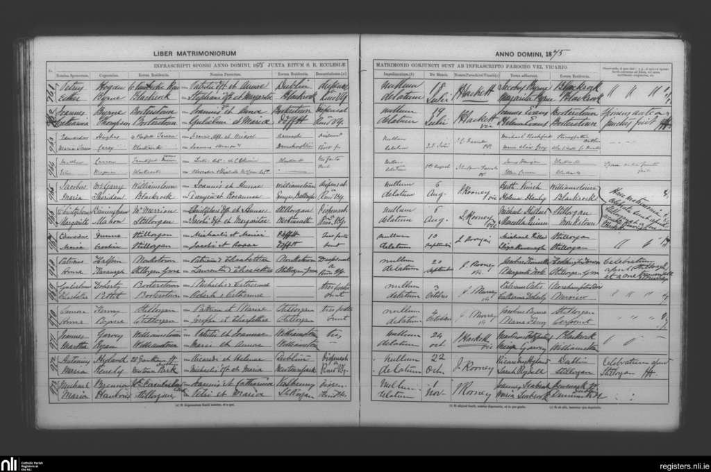 Booterstown; County of Dublin; Archdiocese of Dublin. Marriages, July 1875 to Nov. 1875