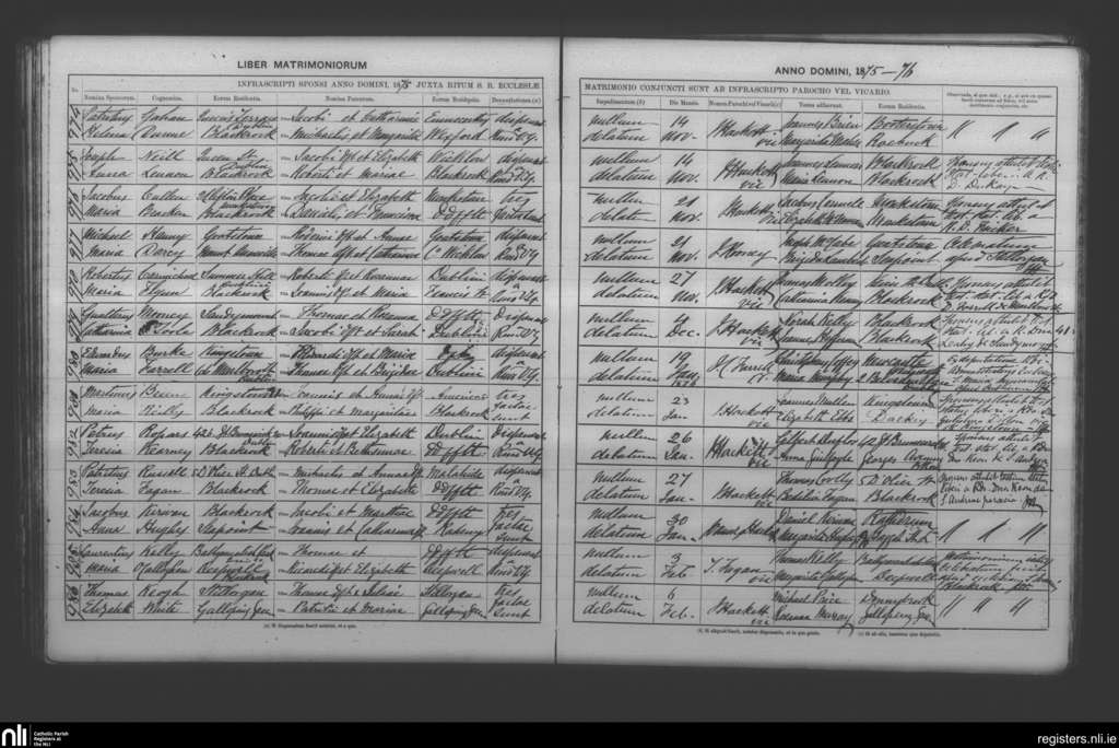 Booterstown; County of Dublin; Archdiocese of Dublin. Marriages, Nov. 1875 to Feb. 1876