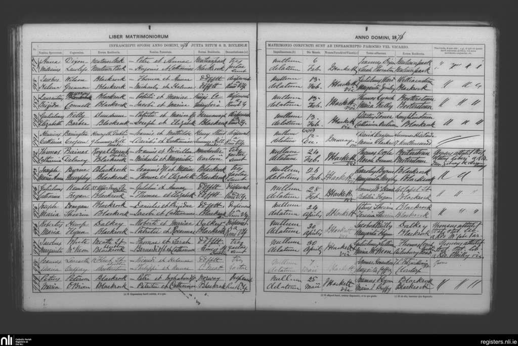 Booterstown; County of Dublin; Archdiocese of Dublin. Marriages, Dec. 1875 to May 1876