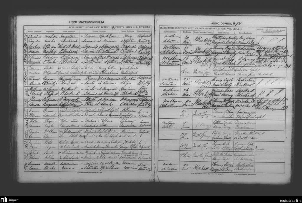 Booterstown; County of Dublin; Archdiocese of Dublin. Marriages, May 1878 to July 1878