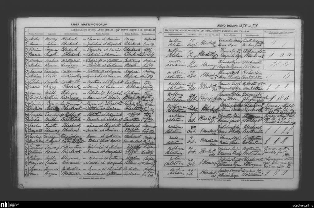Booterstown; County of Dublin; Archdiocese of Dublin. Marriages, Aug. 1878 to Oct. 1878