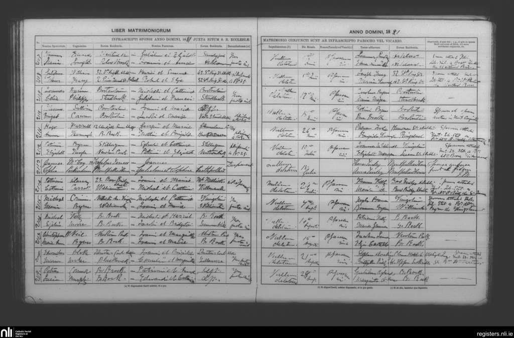 Booterstown; County of Dublin; Archdiocese of Dublin. Marriages, June 1881 to Aug. 1881