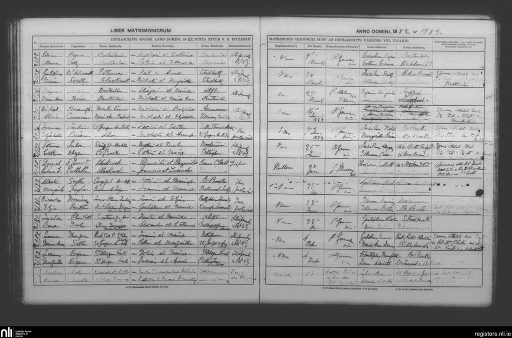 Booterstown; County of Dublin; Archdiocese of Dublin. Marriages, Nov. 1882 to Feb. 1883