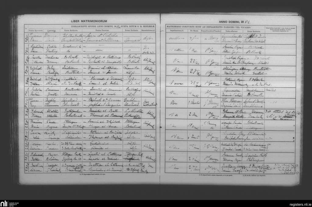 Booterstown; County of Dublin; Archdiocese of Dublin. Marriages, Jan. 1886 to June 1886