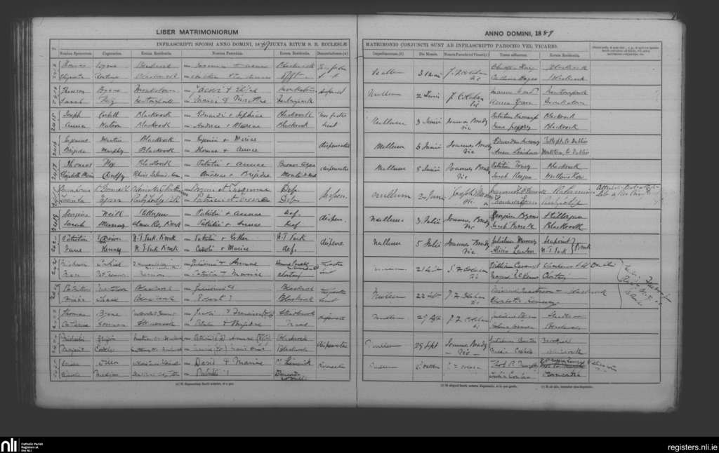 Booterstown; County of Dublin; Archdiocese of Dublin. Marriages, May 1889 to Oct. 1889