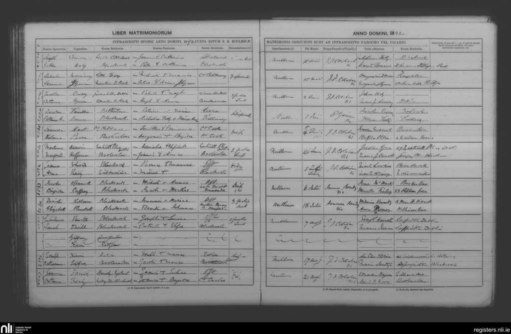 Booterstown; County of Dublin; Archdiocese of Dublin. Marriages, May 1892 to Aug. 1892
