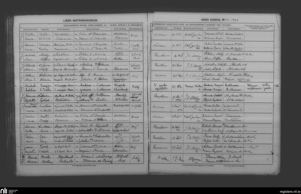 Booterstown; County of Dublin; Archdiocese of Dublin. Marriages, Oct. 1897 to Feb. 1898