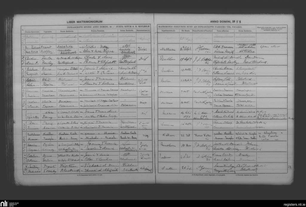 Booterstown; County of Dublin; Archdiocese of Dublin. Marriages, Aug. 1898 to Nov. 1898