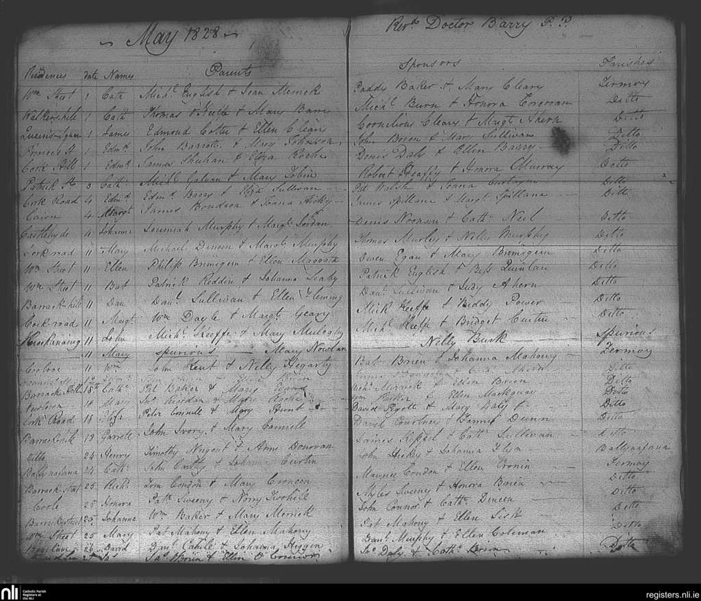 Fermoy; County of Cork; Diocese of Cloyne. Baptisms, May 1828