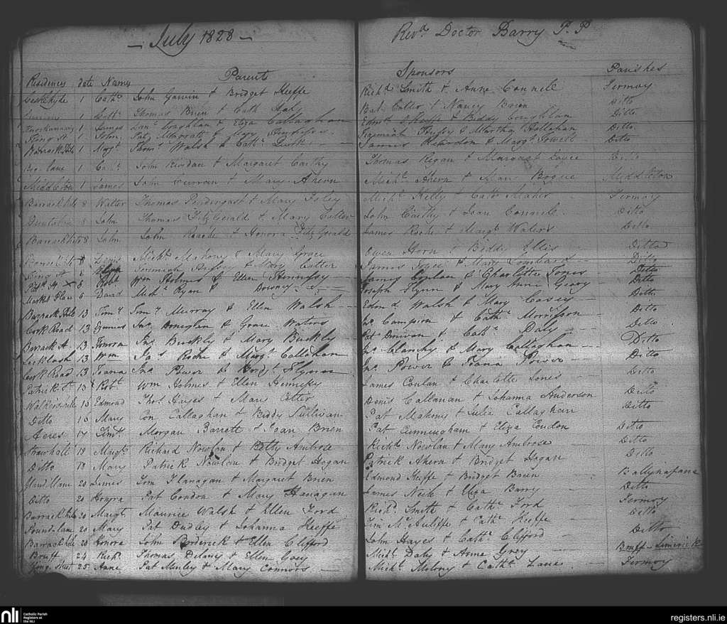 Fermoy; County of Cork; Diocese of Cloyne. Baptisms, July 1828